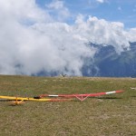 Als Landeplatz bieten sich die die zwei Richtungen aus Süd-Ost und aus Nord bis West an. Es ist Weideland, der Boden ist glatt und der der Höhenlage entsprechend hart. Bei den Ortsansässigen erkundigt, heisste es dann mal „den Kuhfladen musst halt dann ausweichen, gell, dann passt’s“ – gut, manchmal passt’s schon.