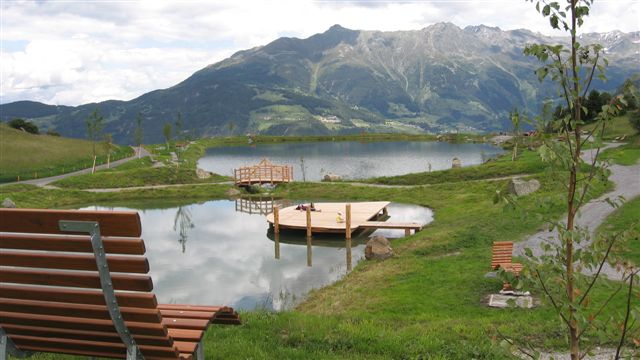 Ca. 20 Gehminuten östlich von Fiss gibt es neuerdings den schön angelegten „Speicherteich Wolfswiese“, wo man sich gemütlich hinsetzen kann oder auch einige Runden schwimmen – obwohl es offiziell nicht ein Badeteich ist, da keine Badeaufsicht anwesend ist.