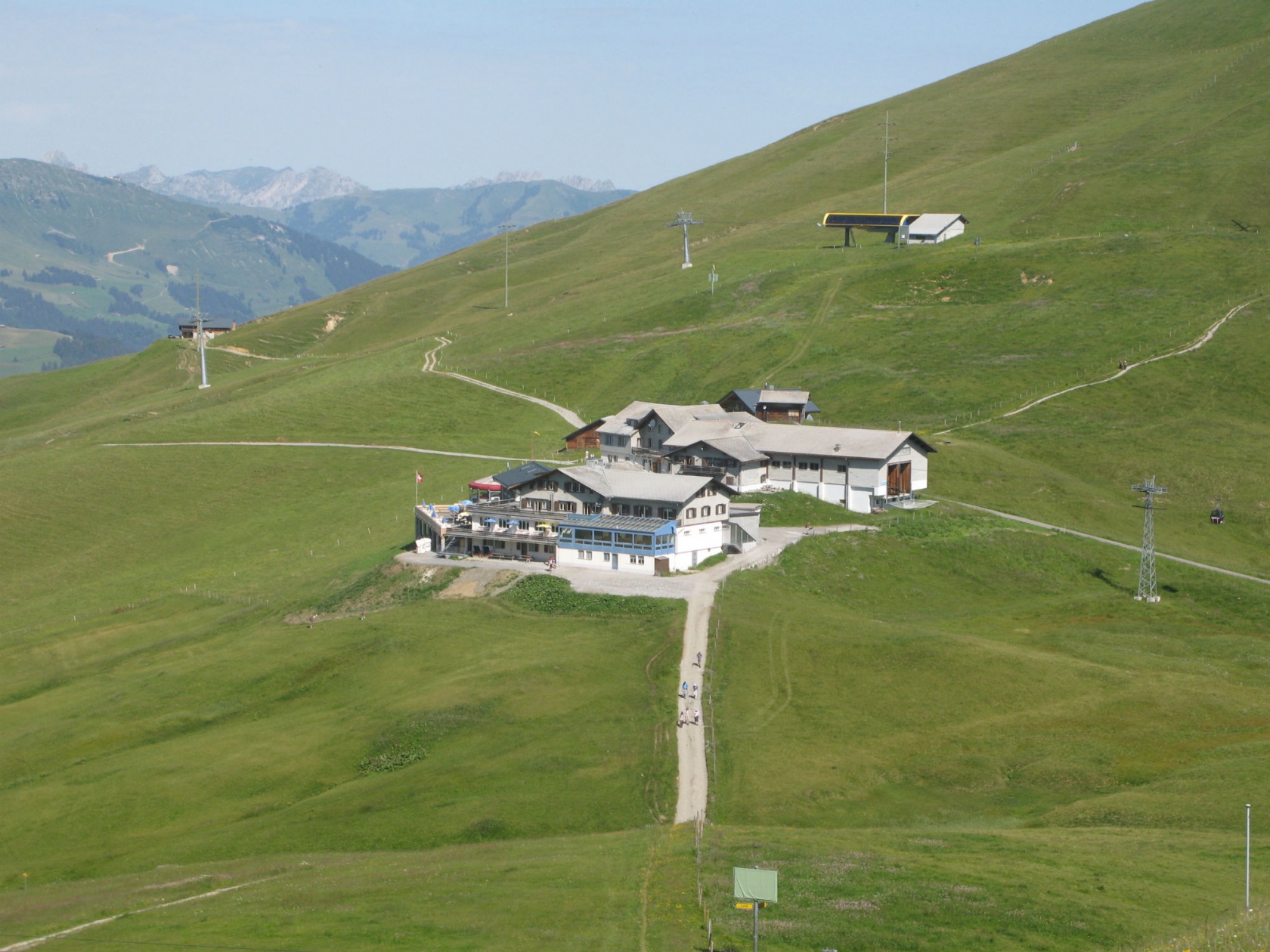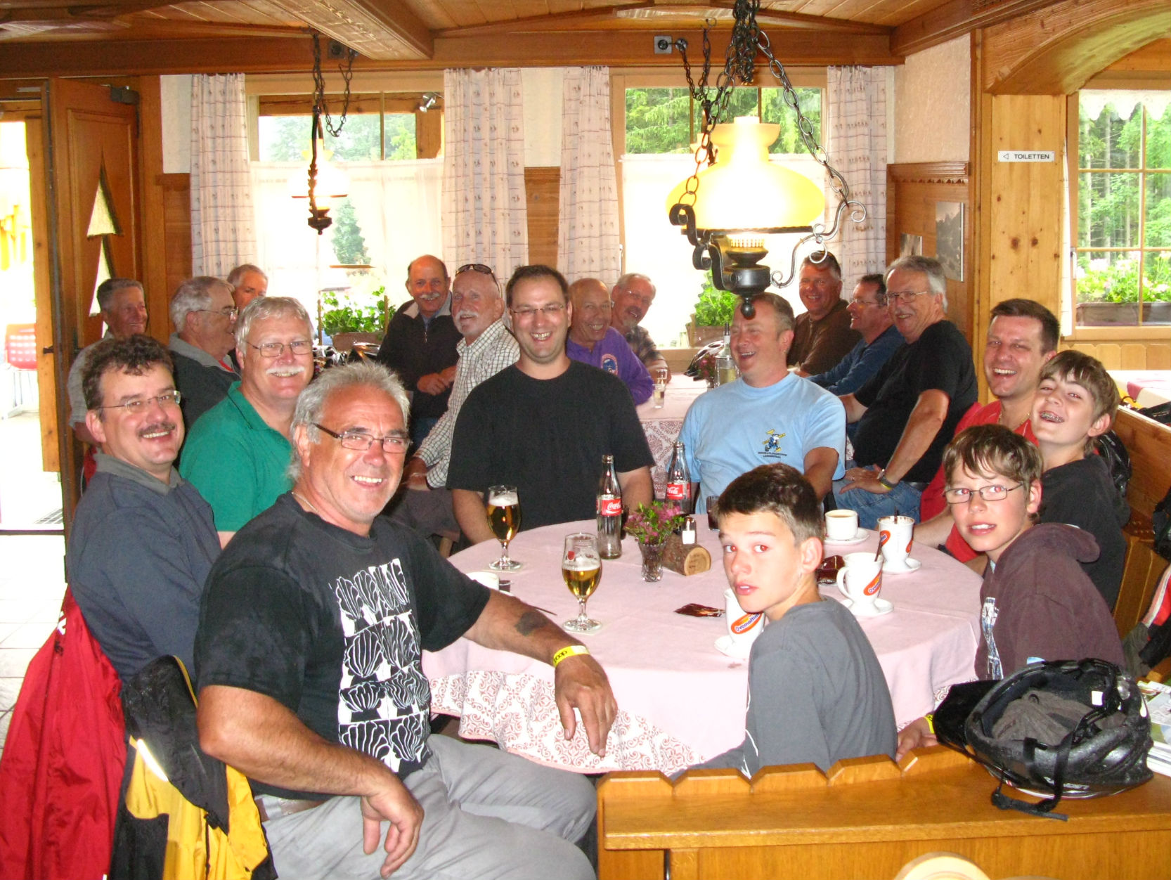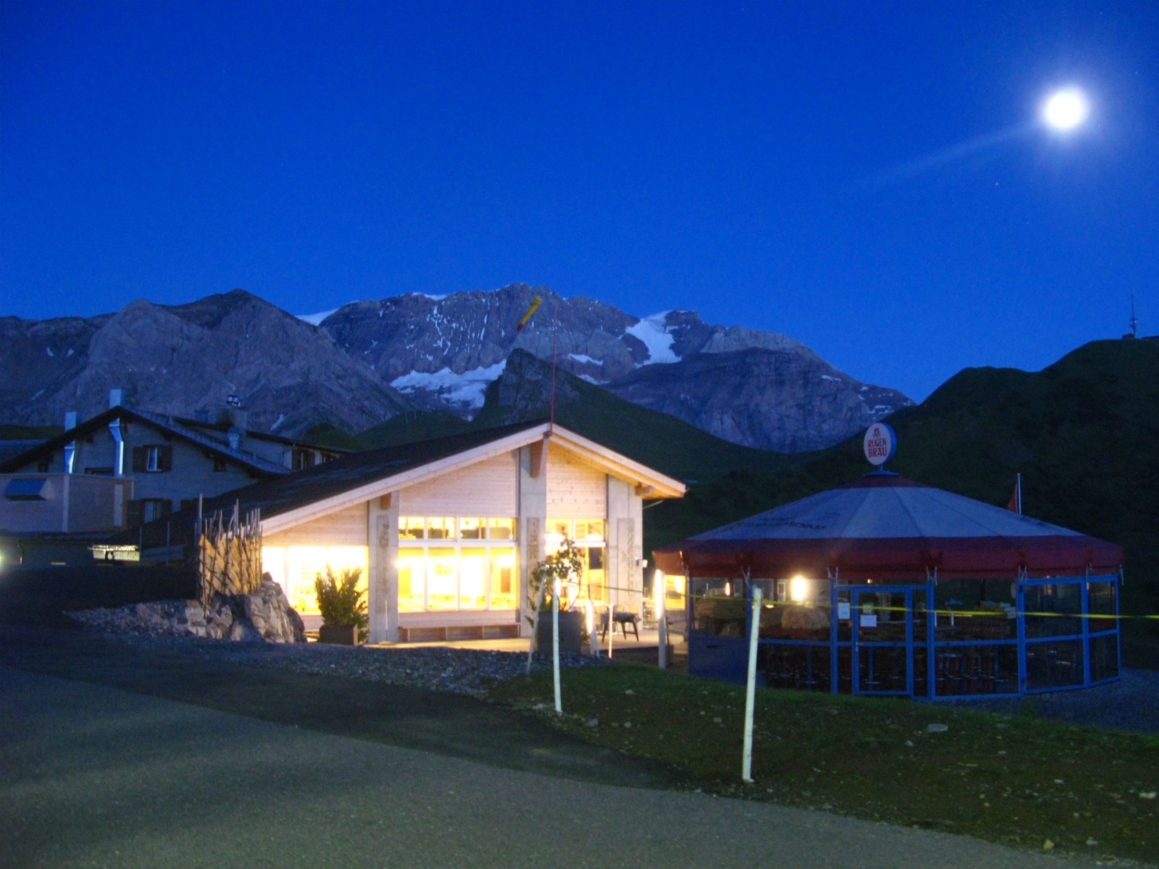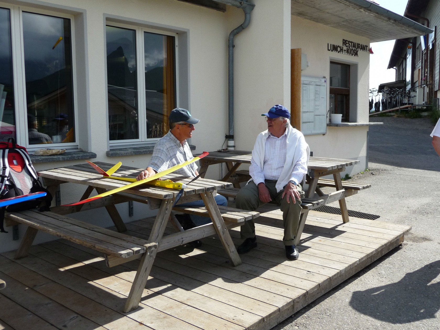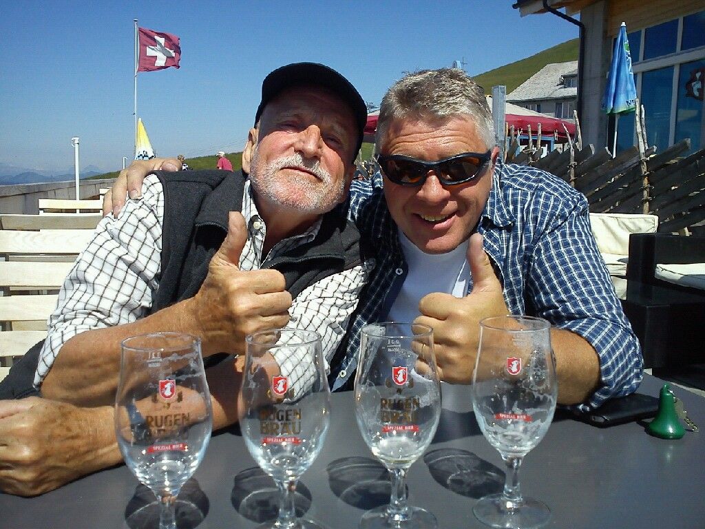 | Le camp de molélisme du Hahnenmoos 2011 devait commencer samedi 8 juillet. Mais Thomas, Günthi et Rolf n’ont pas pu attendre et prenaient l’apéro sur la terrasse du Hahnenmoos jeudi à 11h00 déjà avant de monter au Lavey. |