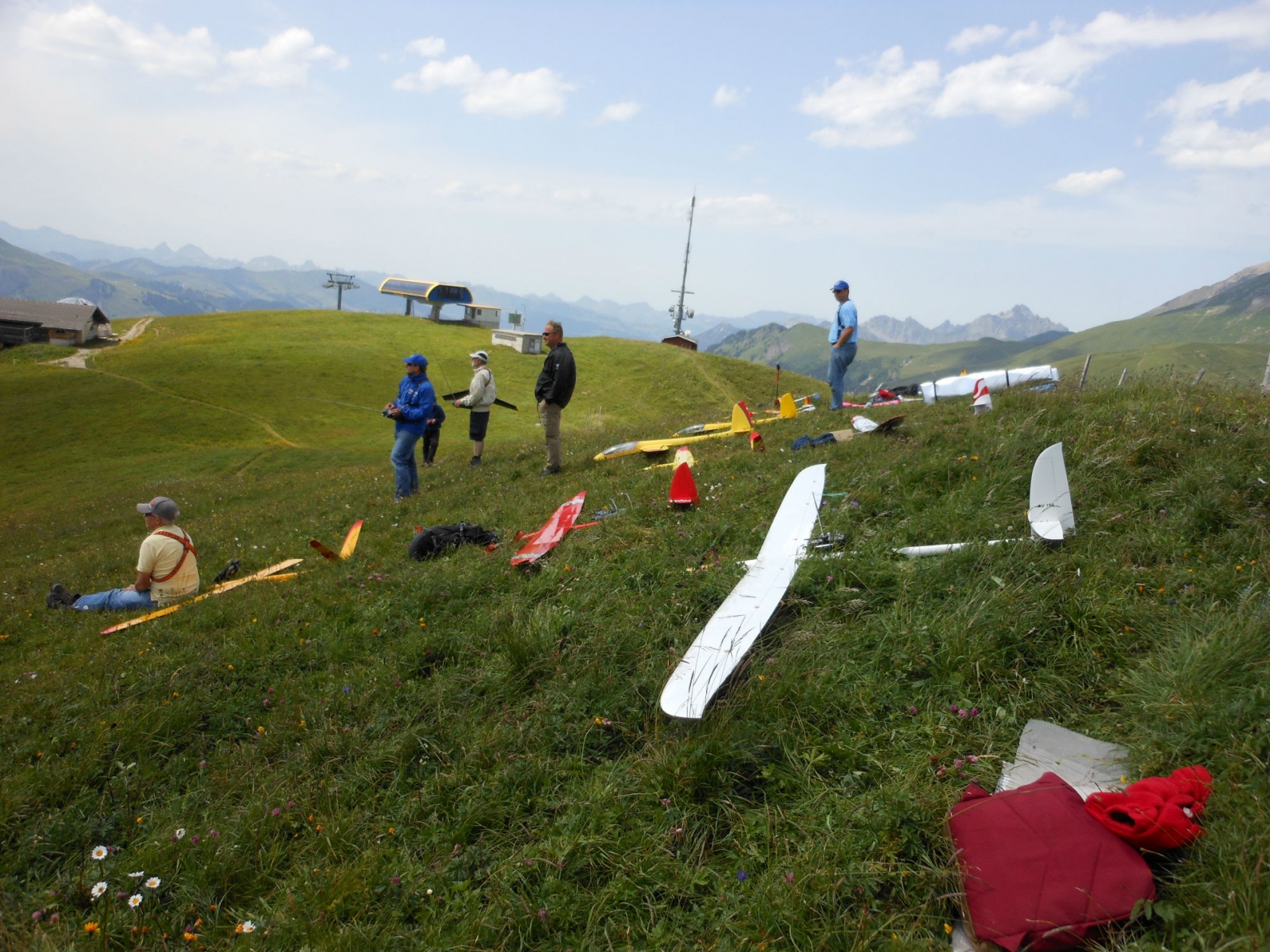 | Dimanche, lundi et mardi : le temps est variable, on redoute des orages qui ne viennent pas et tous peuvent faire de magnifiques vols sur les différents sites, à savoir Schalmi, Metsch, Skilift et bien entendu Bänkli. |
