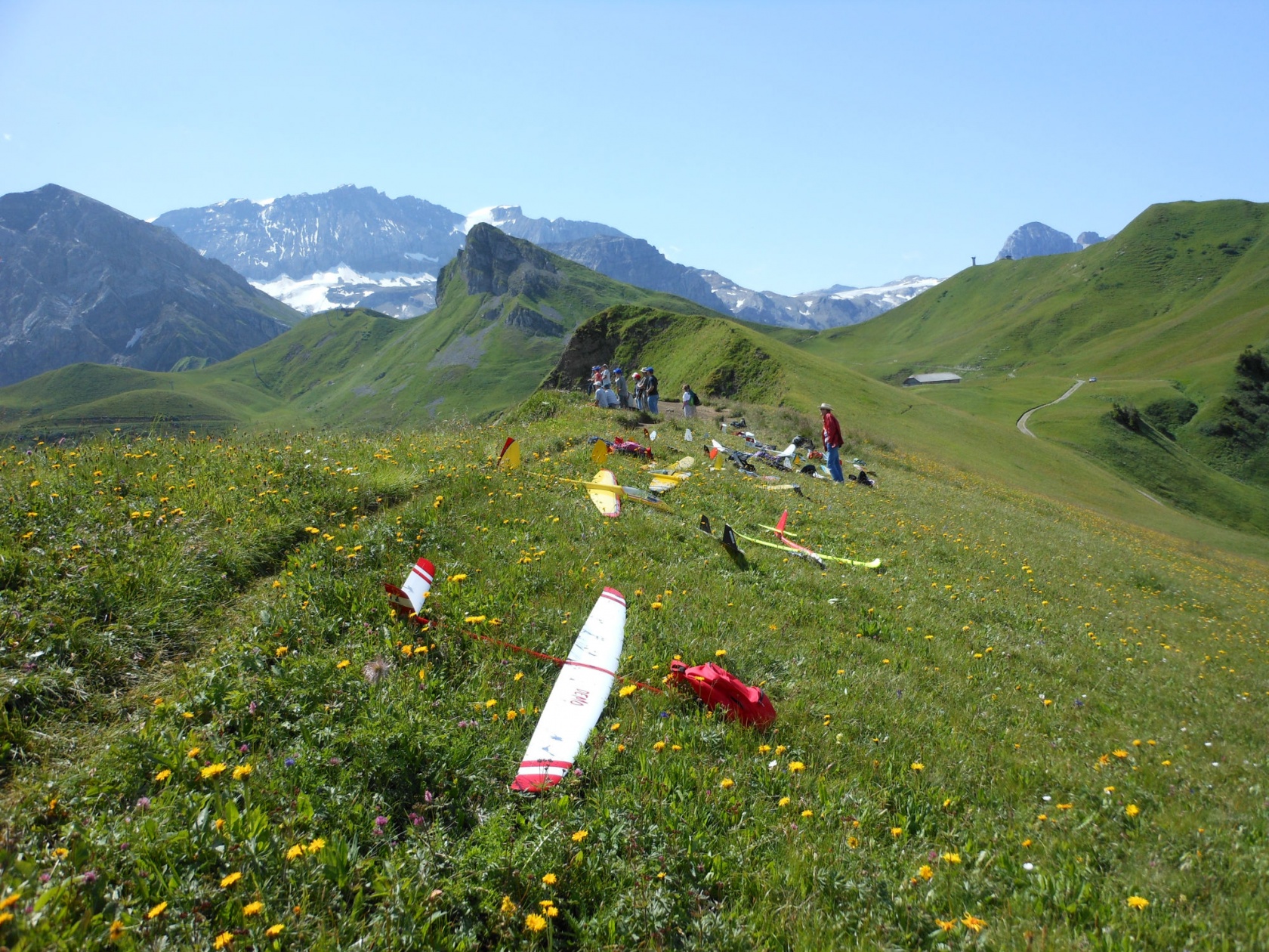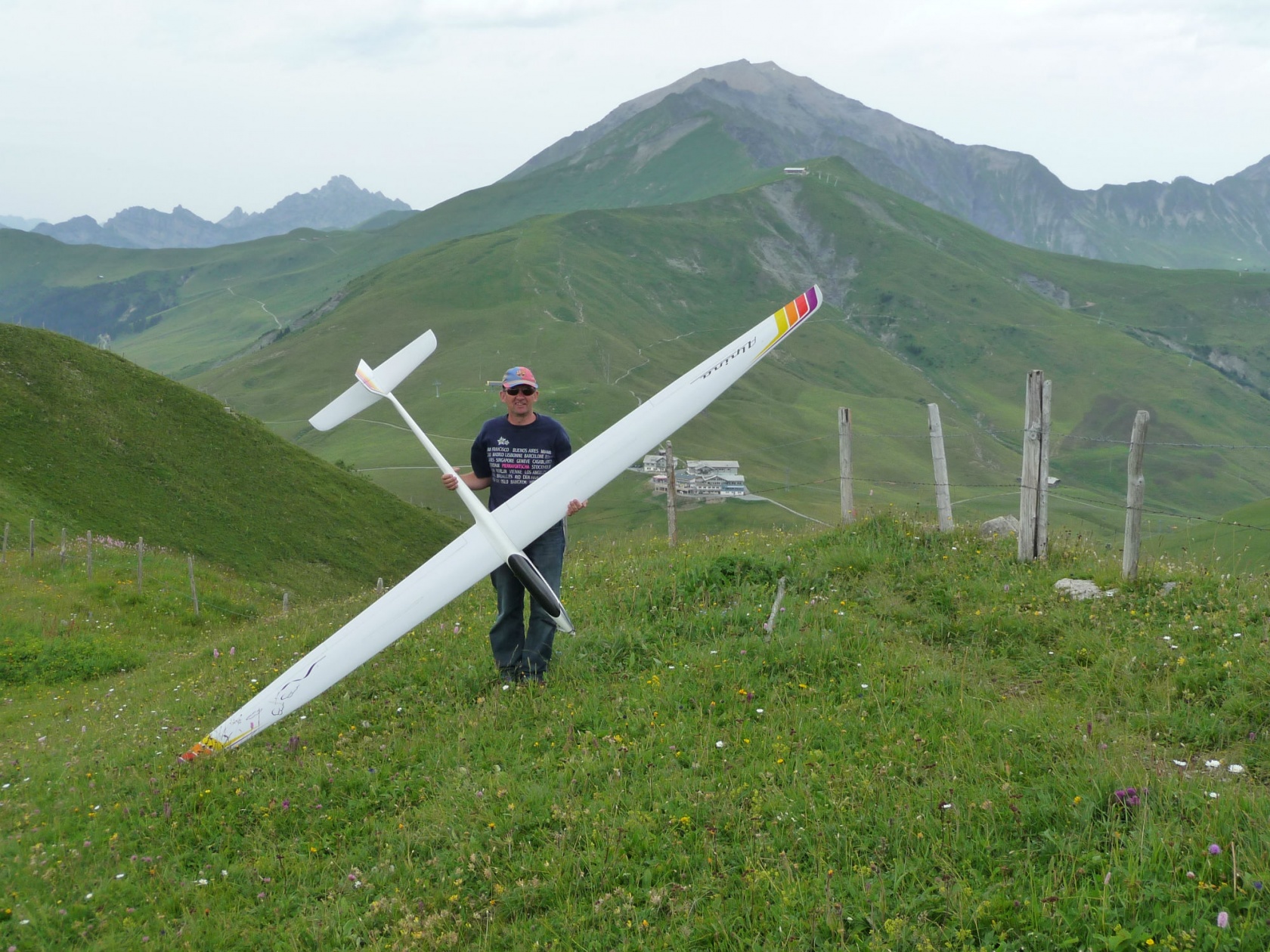 Während unserer Hahnenmooswoche besuchte uns Øyvind R. Hansen und seine Frau aus Norwegen. Øyvind ist ein aktives Mitglied der IGG Norge und fliegt eine grosse DG 1000 von Paritech. Ein Besuch im Hahnenmoos ohne zu fliegen konnte ich nicht verstehen und bat Günthi sein im Modus2 eingestellter Segler ihm anzuvertrauen. Günthi etwas überrascht und ich übergab das Modell seinem Element. Mit sehr schönen Worten und schönen Bildern dankt hier Øyvind für die Kameradschaft und das Gefühl in den Schweizeralpen fliegen zu dürfen.