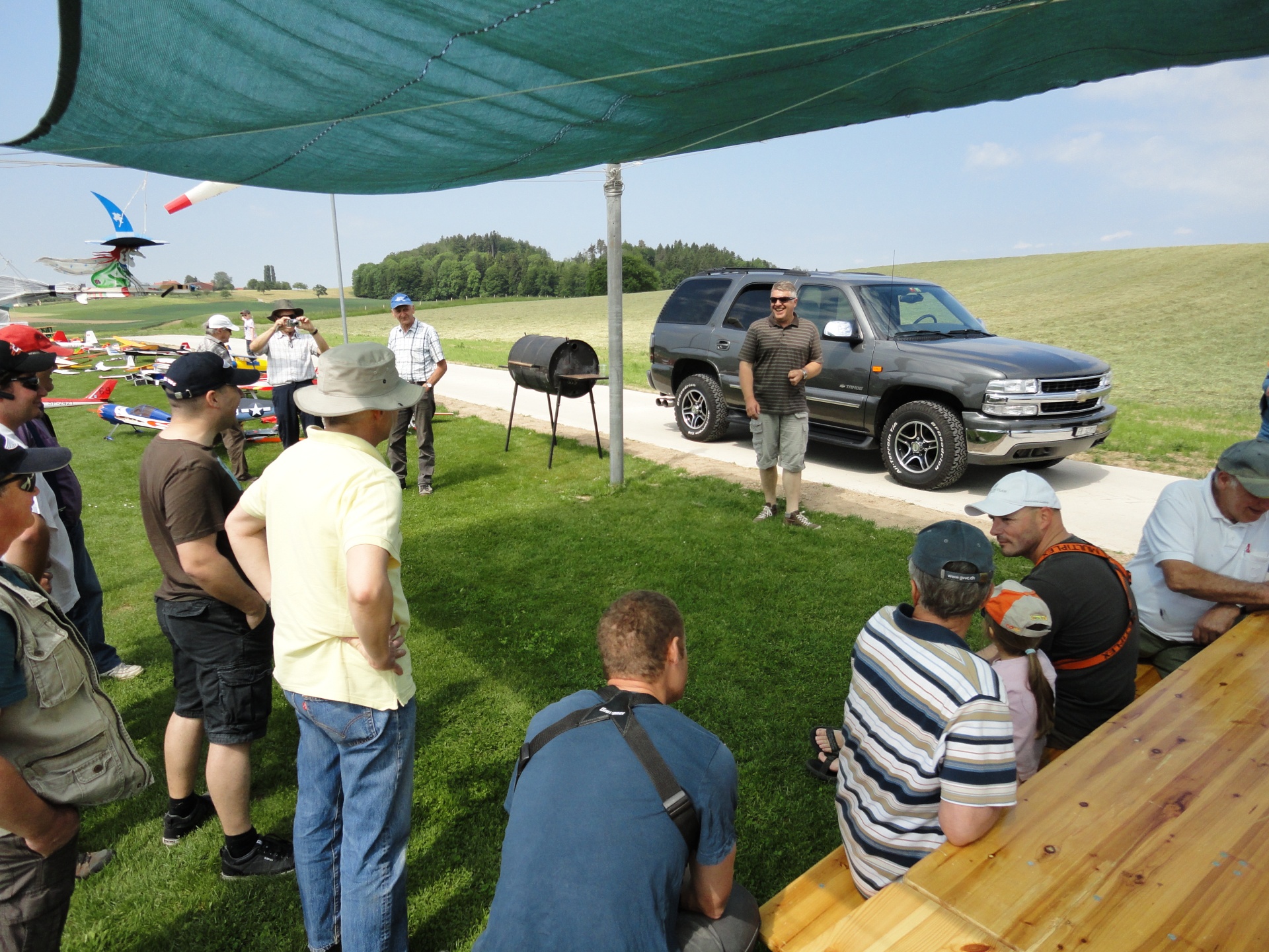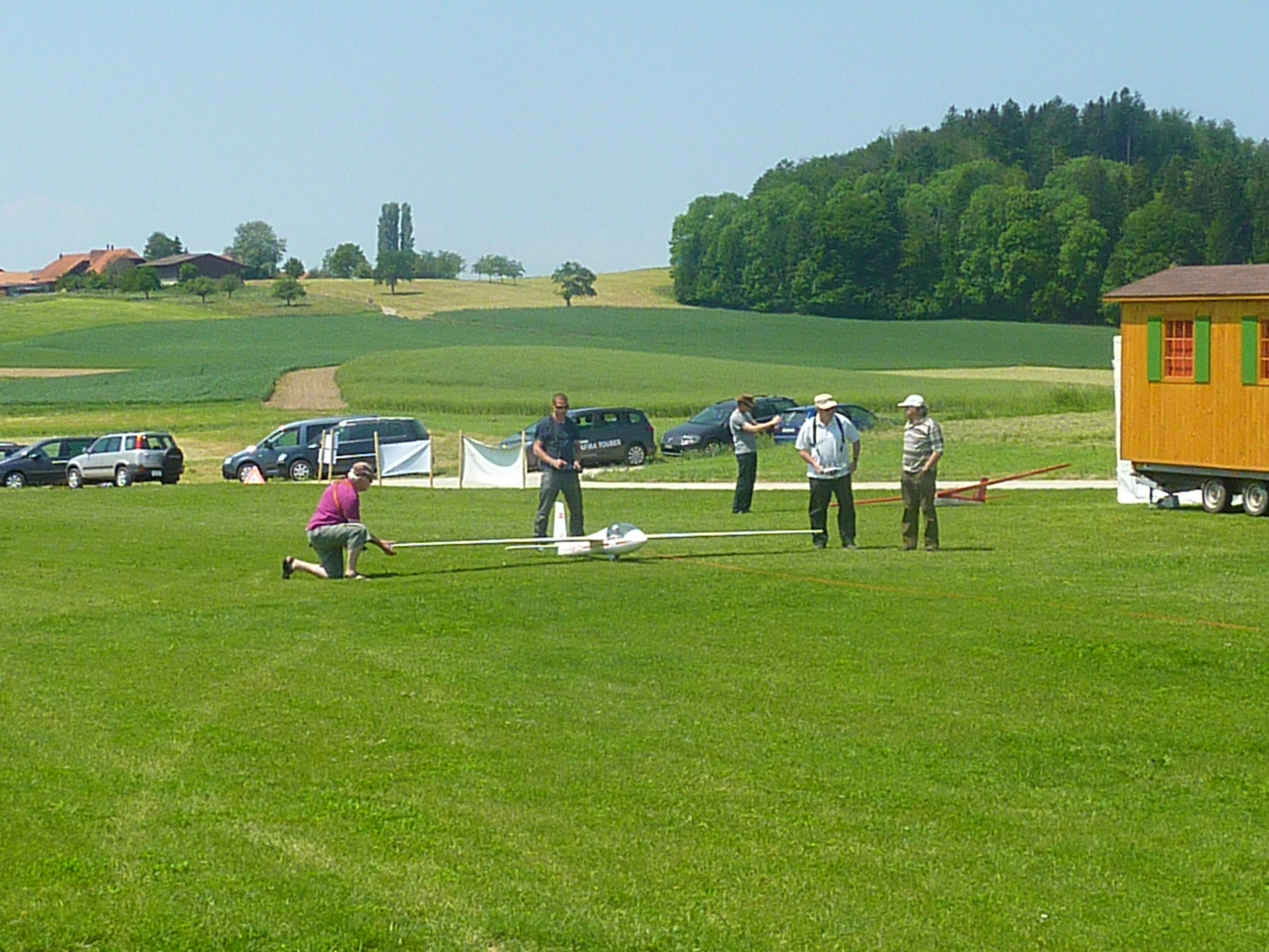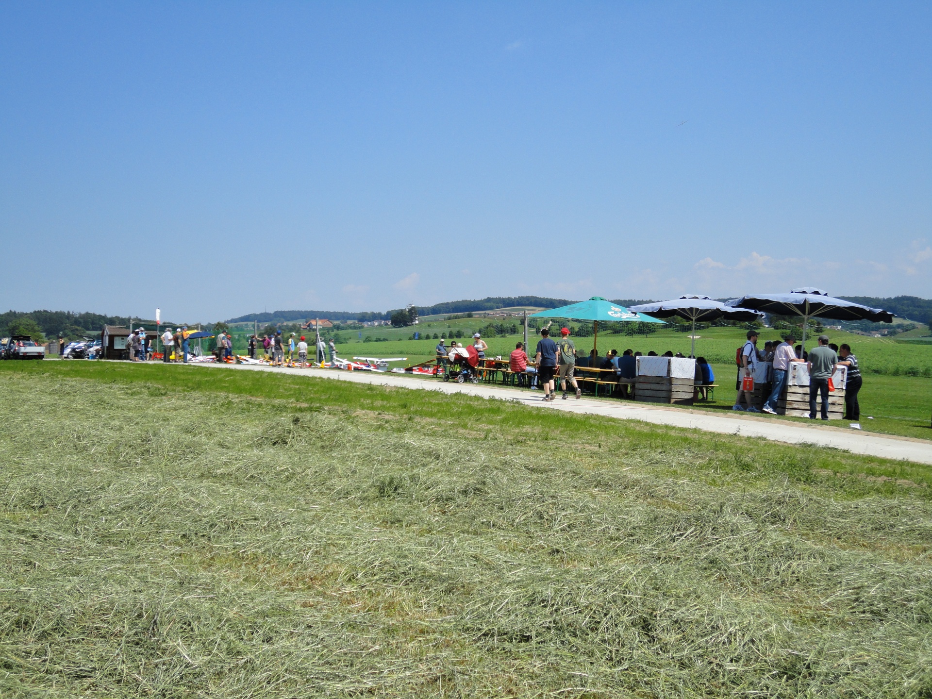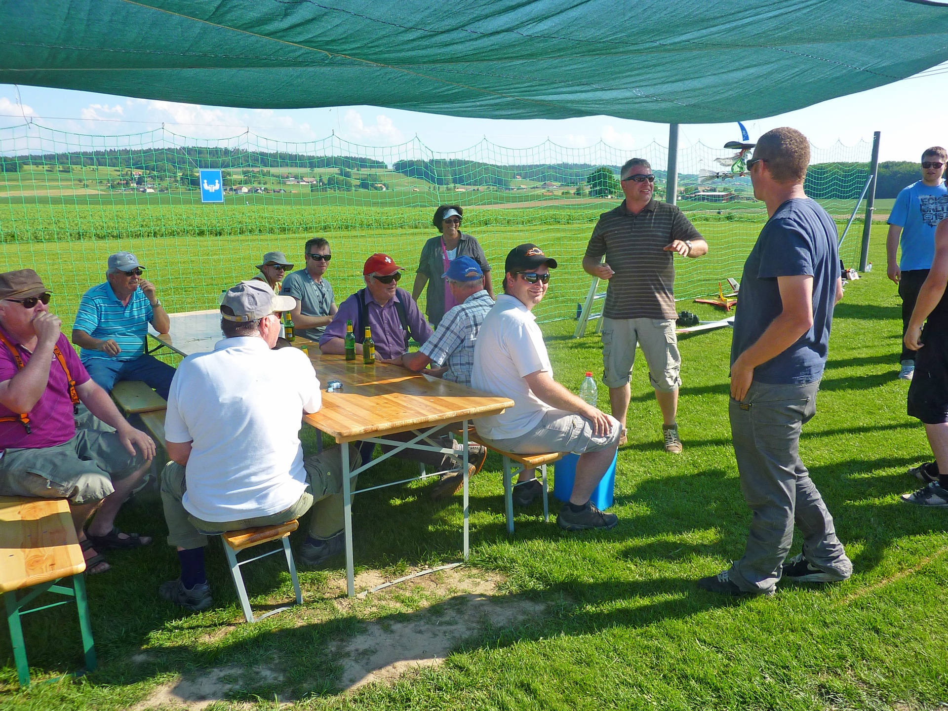 « La balade gourmande“ hiess die bukolische Wanderung welcher der FC Misery-Courtion mit Erfolg organisierte. Durch Dörfer, Wiesen und vorbei an Bauernhäusern schlenderte der Weg. Die über 350 Gäste wurden mit einem 5 Gang Menü entlang des Weges reichlich verwöhnt. Mit vollem Magen erreichten die Wanderer unseren, von der Sonne aufgeheizten Modellflugplatz.