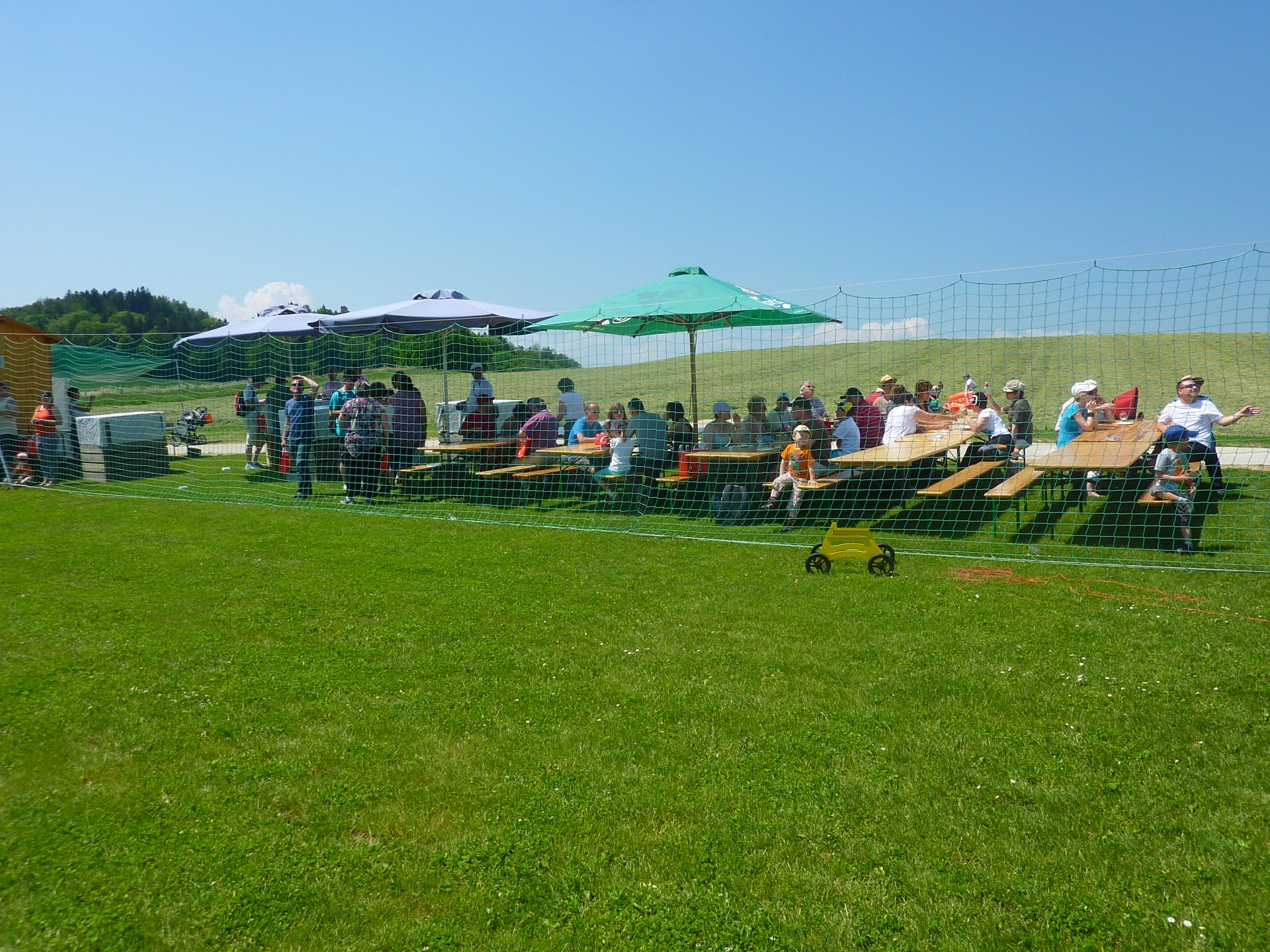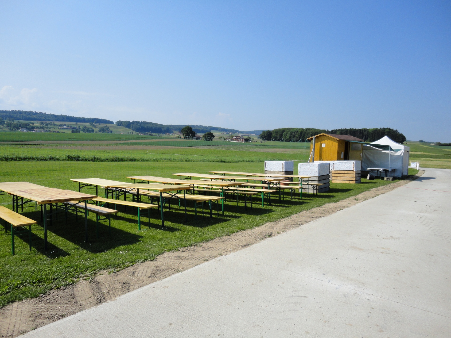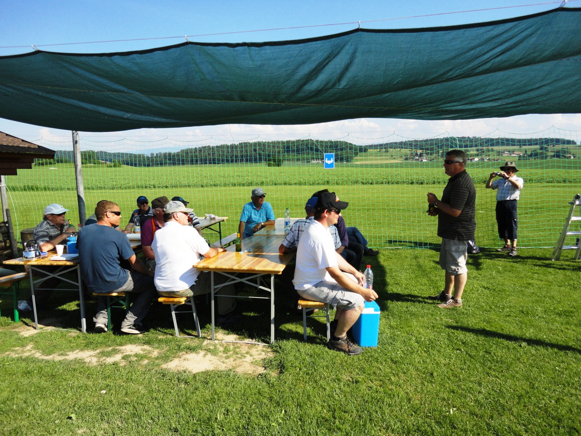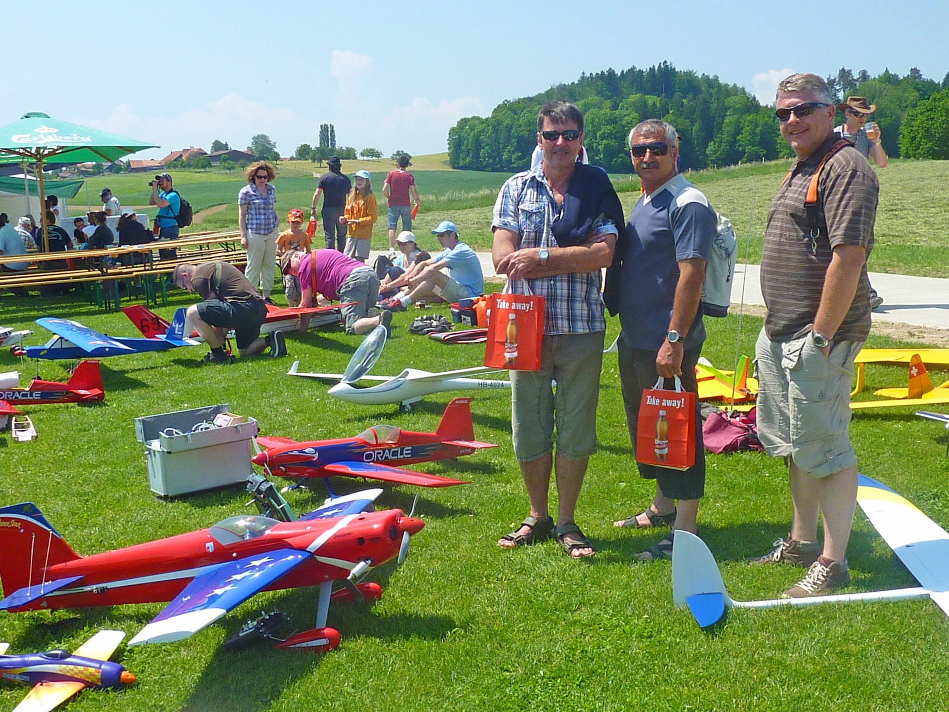 « La balade gourmande“ hiess die bukolische Wanderung welcher der FC Misery-Courtion mit Erfolg organisierte. Durch Dörfer, Wiesen und vorbei an Bauernhäusern schlenderte der Weg. Die über 350 Gäste wurden mit einem 5 Gang Menü entlang des Weges reichlich verwöhnt. Mit vollem Magen erreichten die Wanderer unseren, von der Sonne aufgeheizten Modellflugplatz.