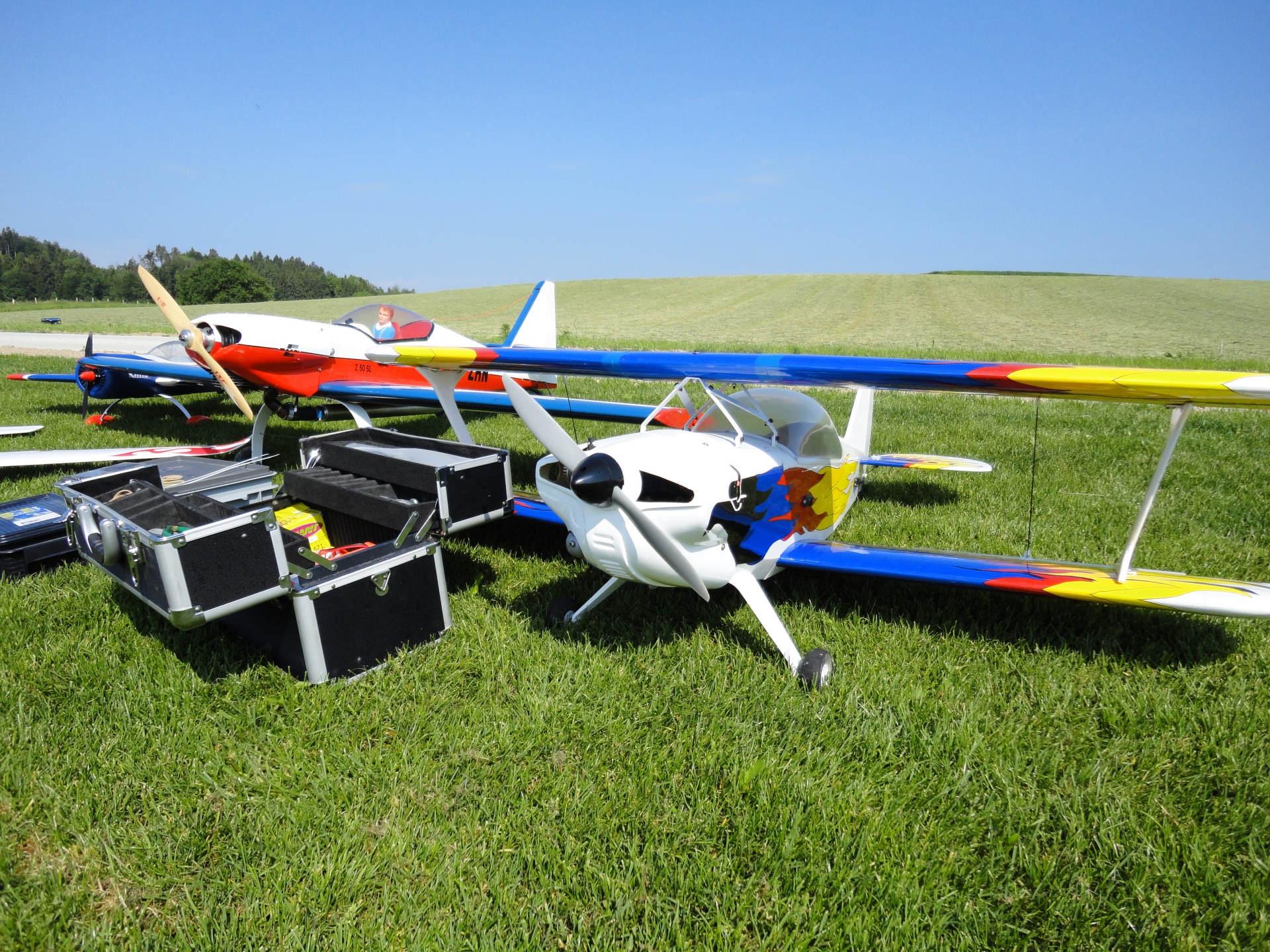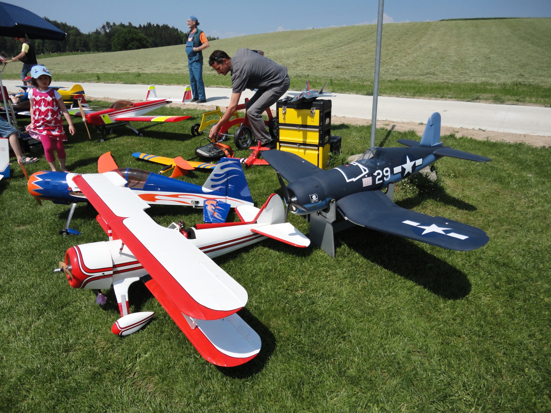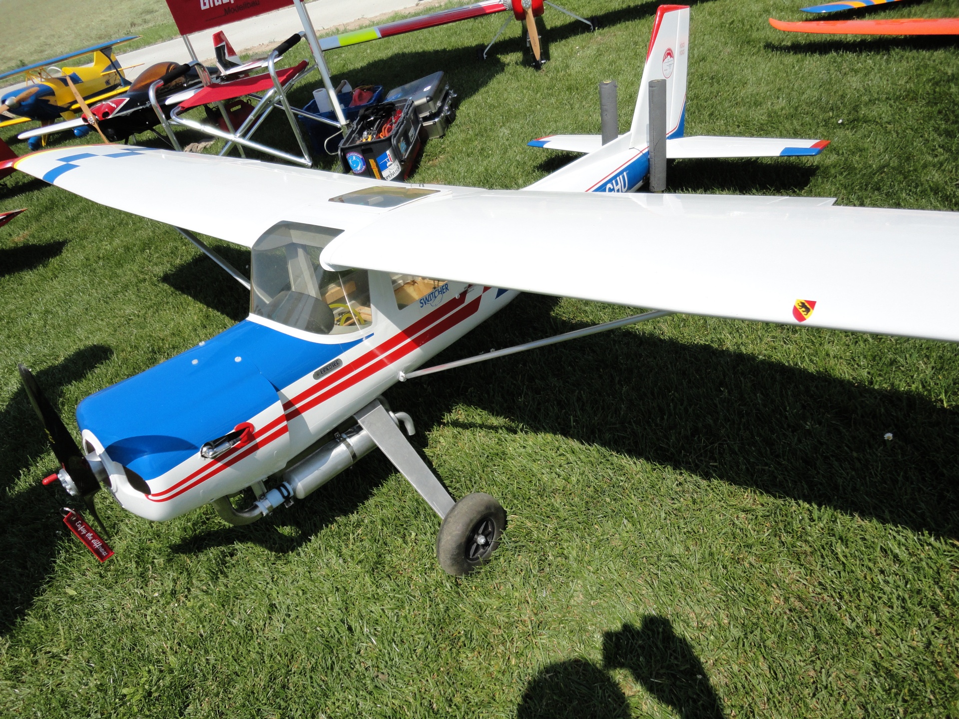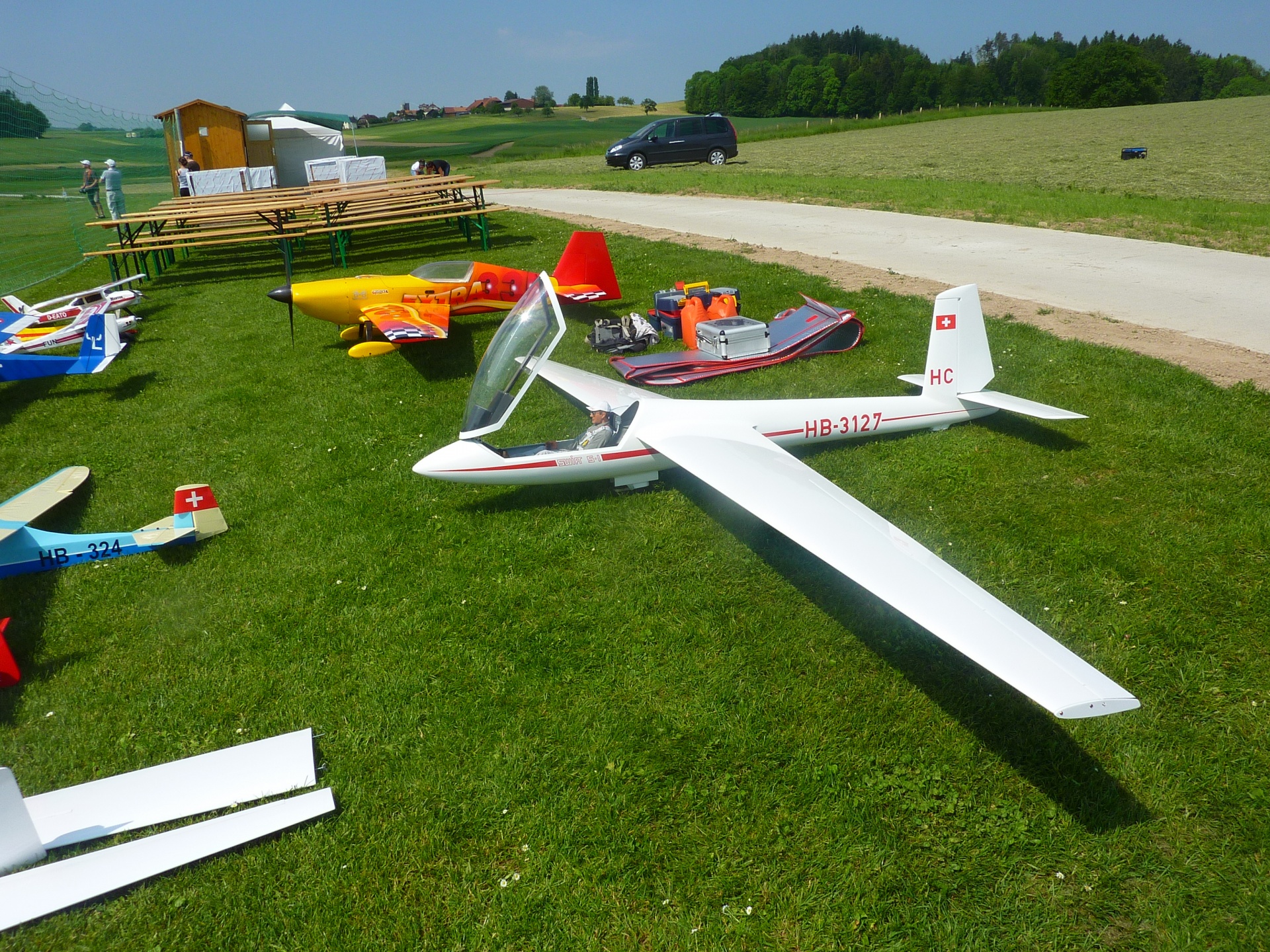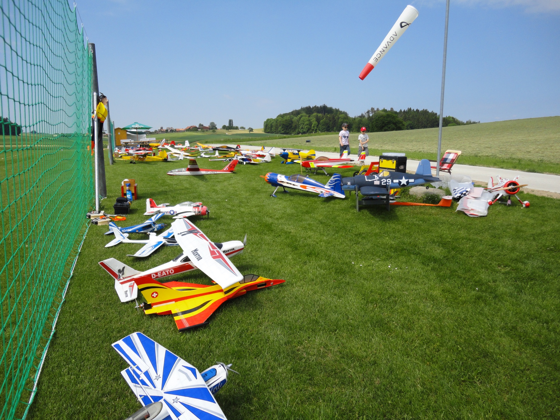 L’équipe bien rôdée a servi un assortiment de fromages régionaux accompagné d’une corbeille de pain et d’un excellent vin. Peut-être celui-ci a-t-il été goûté et goûté encore, car nous avons volé intensément et ainsi suscité d’innombrables questions auxquelles nous avons répondu avec un vif plaisir. Le parc de modèles réduits s’étendait (presque) à perte de vue. Nous avons veillé à offrir un accueil de qualité et avons certainement ainsi laissé le meilleur des souvenirs aux participants, aux voisins et, ce qui est tout aussi important, à la Commune. Votre engagement a démontré que nous sommes effectivement un “Club pour décoller”. Un grand merci également aux photographes d’avoir immortalisé ces moments précieux.