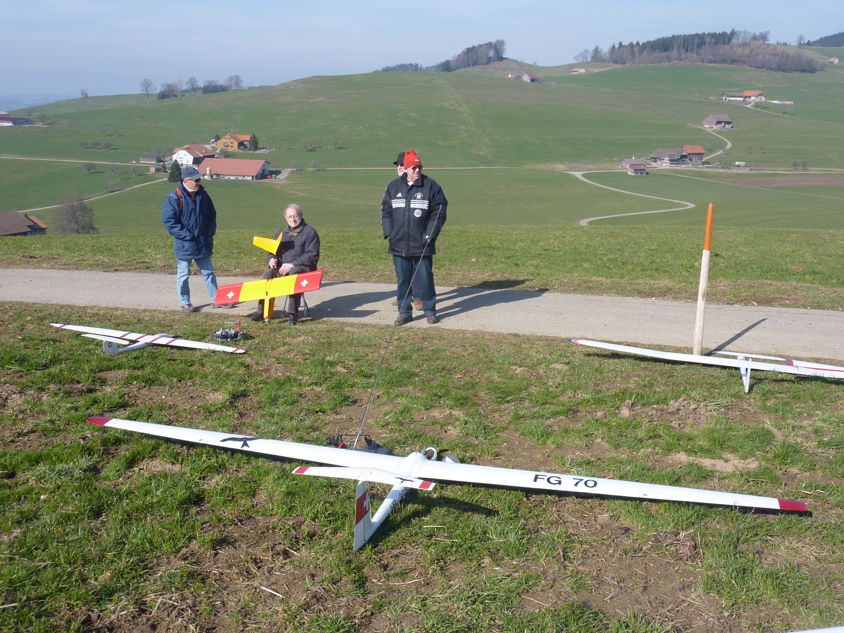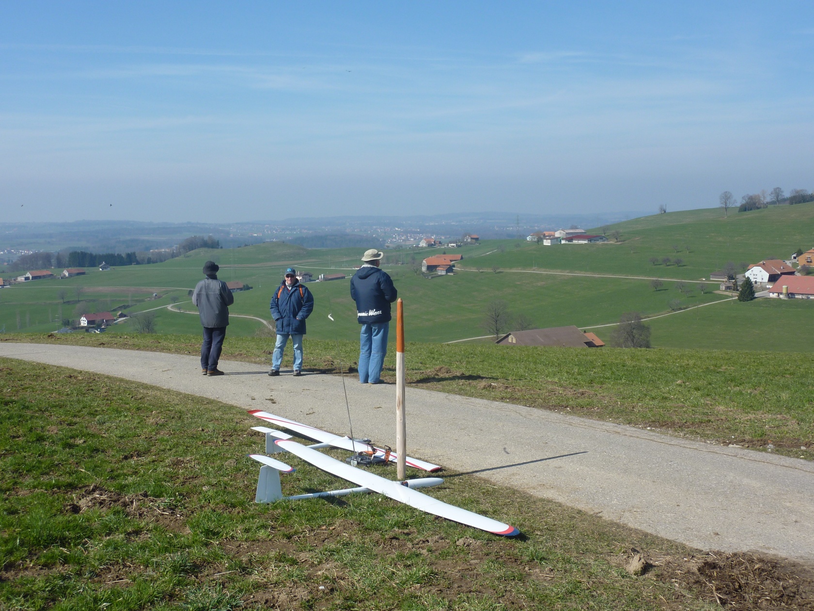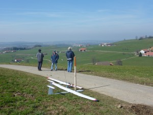 Une belle journée, un rayon de soleil et les voilà partis, le coffre plein de planeurs, semi-maquettes ou autres. Et ils se retrouvent à la pente, pour un après-midi de vol jusqu’à ce que les accus soient vides!